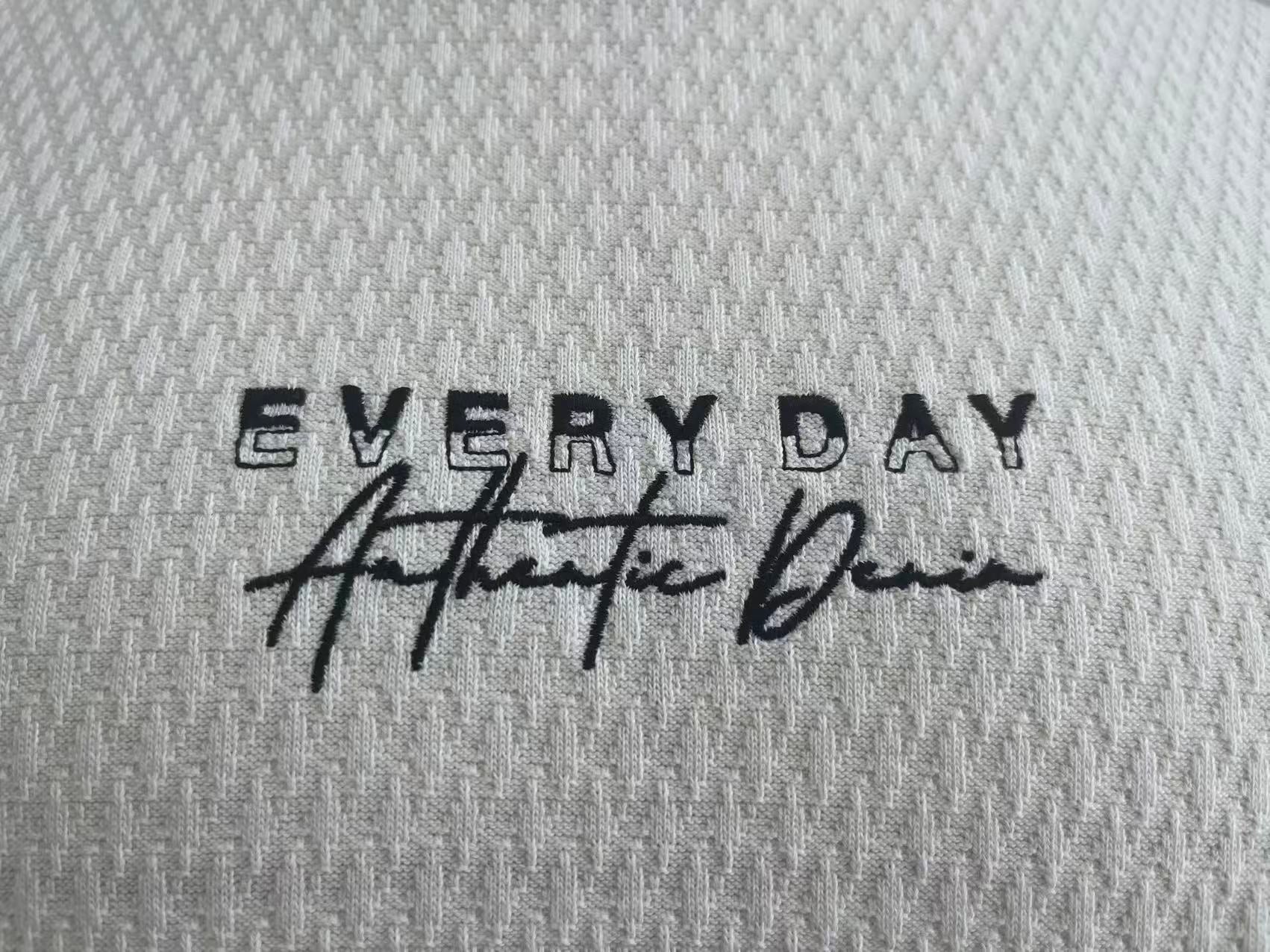 Jacquard fabric men white T-shirt with embroidery
